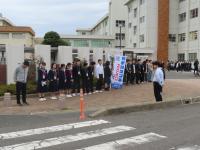 今朝は学校敷地内の歩道に立ち、「おはようございます!」と、地域の方々や登校する中学生・高校生に向けて、元気な声を届けました。
