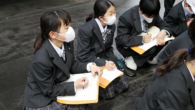 生徒は、メモを取りながら真剣に講演を聞いていました。