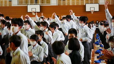 卒業式終了後は、全校生徒で合唱を行い、3年生を送り出しました。