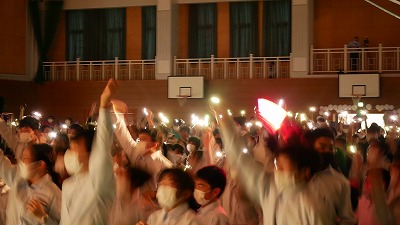 生徒たちは応援委員会とチアリーダーの演舞に合わせて、一丸となって応援しました。