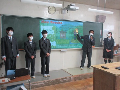 2年生は、保護者や高校生、SSH運営指導員の先生を前に、