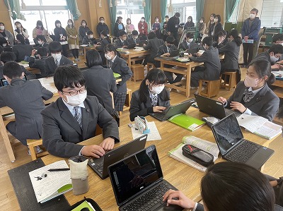 社会の秩序について、活発な話し合いをする生徒の姿が見られました。