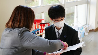 担任の先生と1年を振り返る生徒の姿が見られました。
