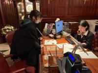 感染症予防のため、一般の生徒は教室からオンラインで参加しました。