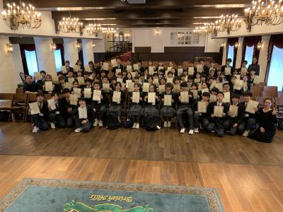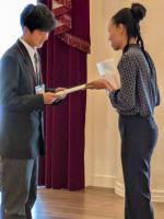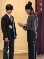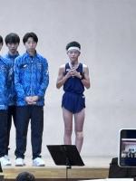 中学では、「英語プレゼンテーションフォーラム」や「ジュニアカップ中学校野球大会」、「パンダアートコンテスト」などで優れた結果を残した皆さんが表彰されました。